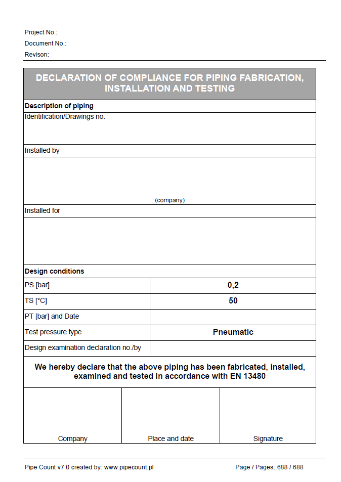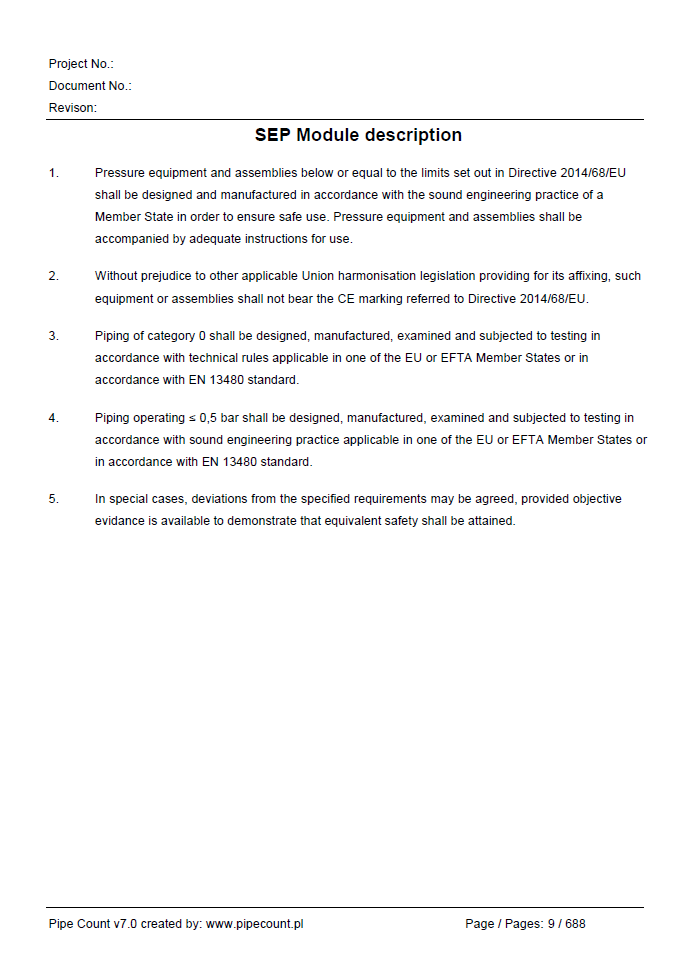 Pipe Count dokonuje oceny kategorii rurociągu zgodnie z Dyrektywą UE 2014/68/UE.