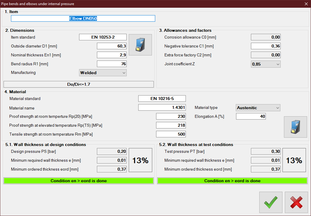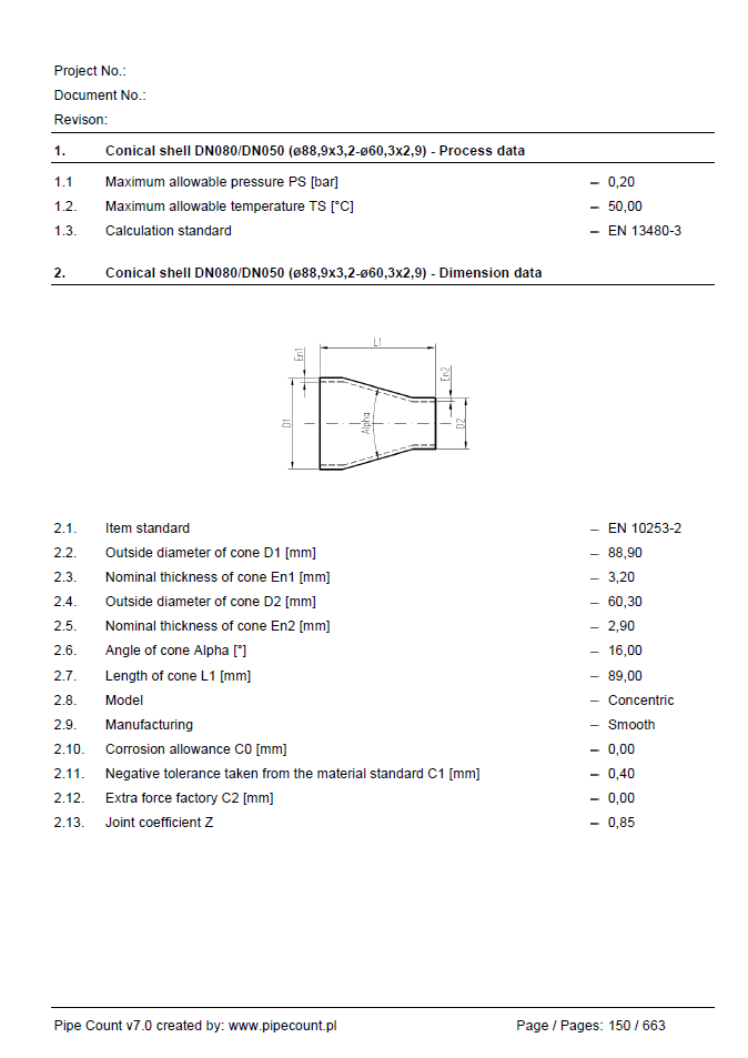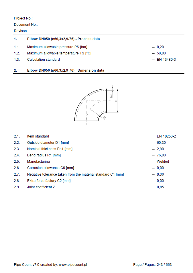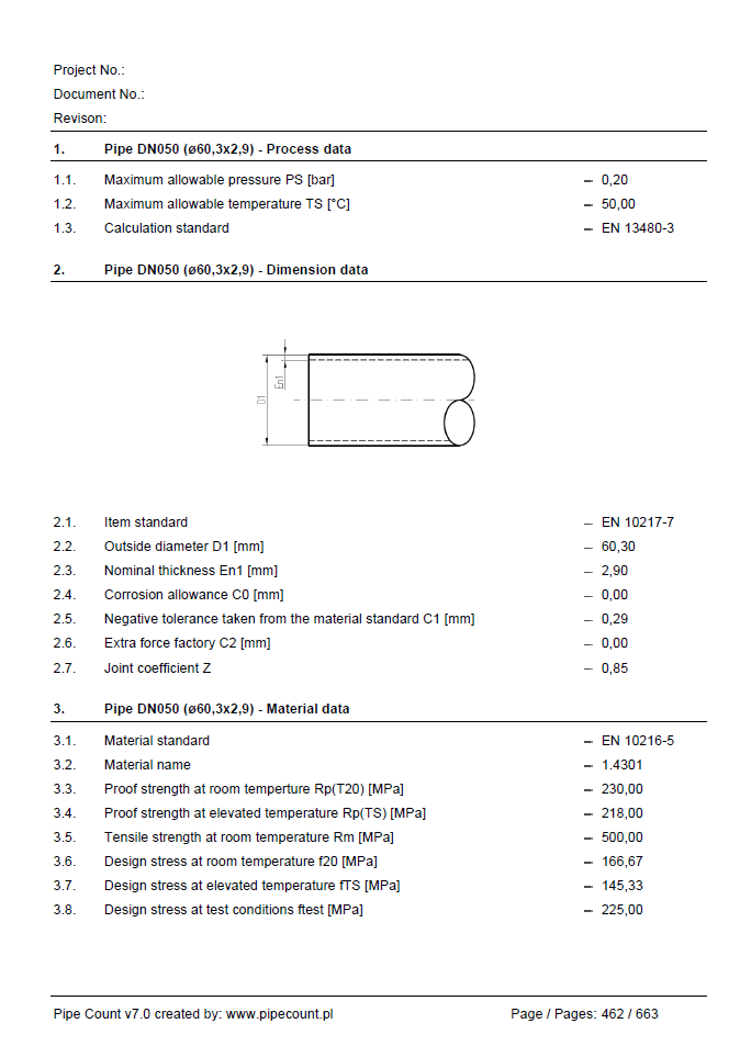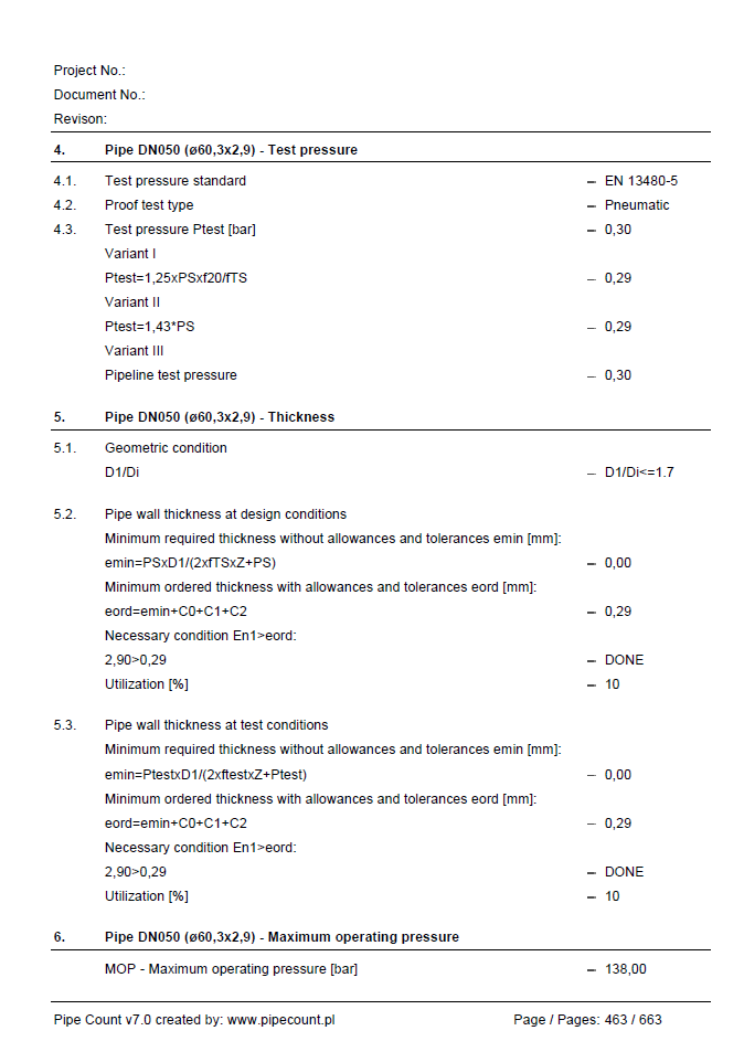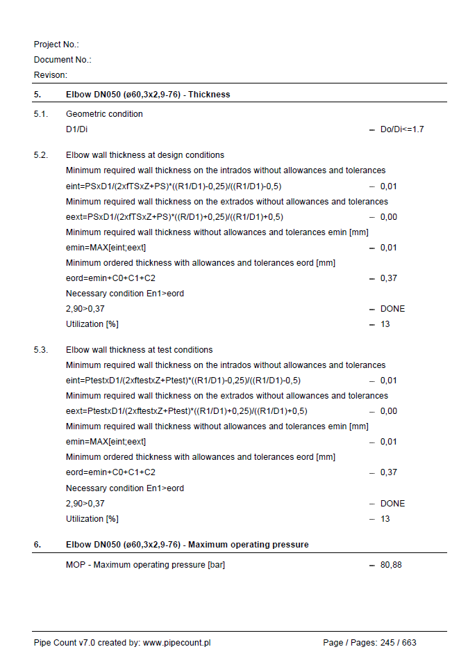 Pipe Count to program w którym wykonasz obliczenia grubości ścianek elementów rurociągu pod działaniem ciśnienia wewnętrznego zgodnie z EN 13480-3.
