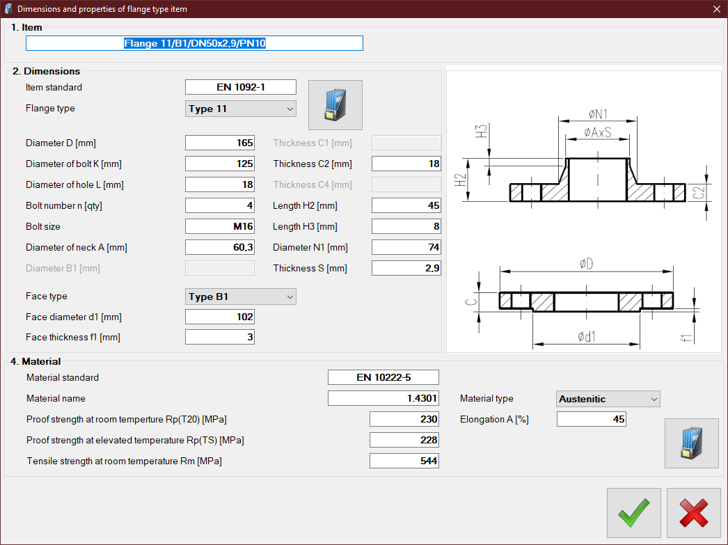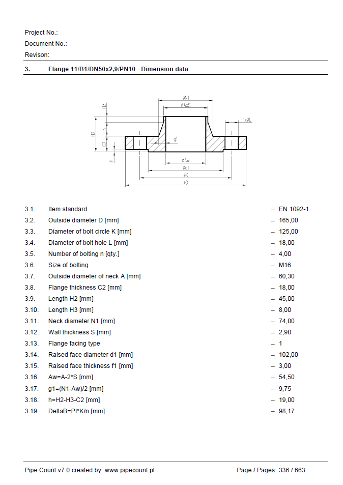 Pipe Count posiada wbudowaną bazę danych elementów znormalizowanych oraz materiałów.