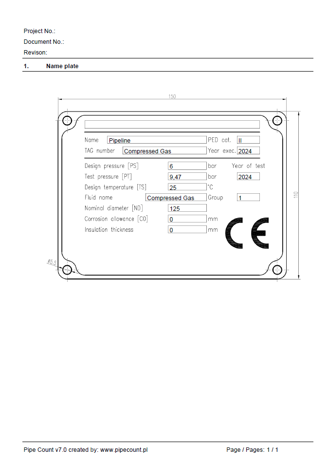 Pipe Count generuje wzór tabliczki znamionowej ze znakiem CE jeśli w wyniku oceny taki znak jest wymagany.