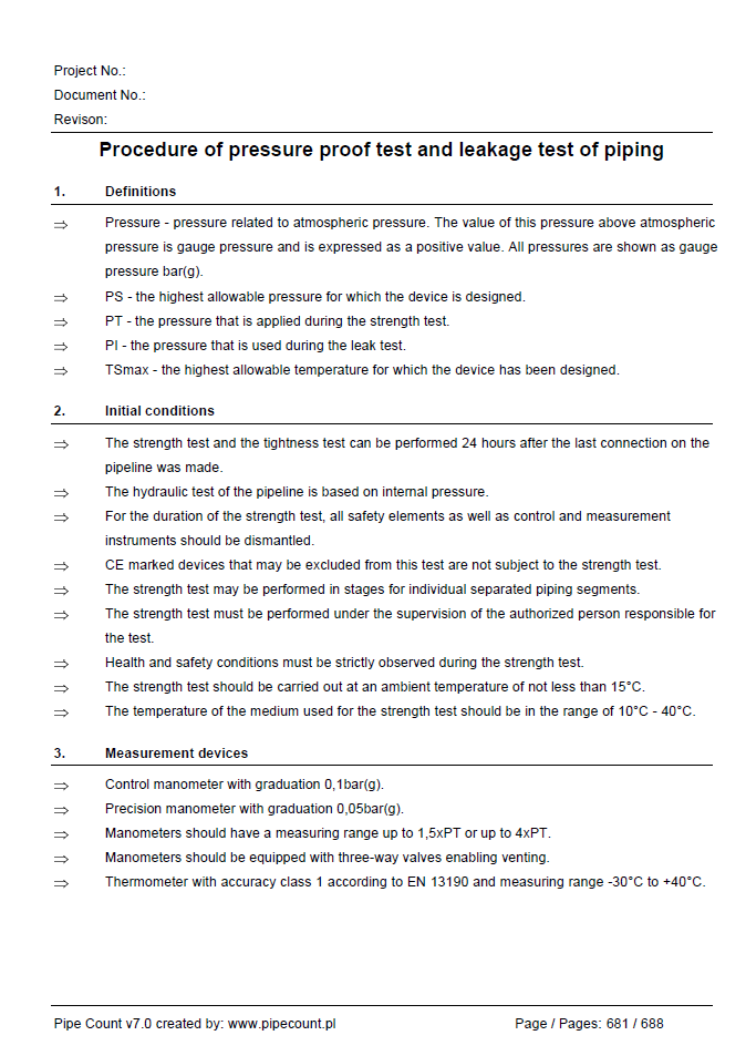 Pipe Count generuje procedury i wytyczne, które są doskonały uzupełnieniem raportu z obliczeń.
