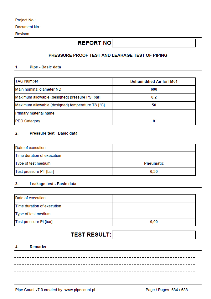 Pipe Count generuje raport z przeprowadzonych obliczeń.